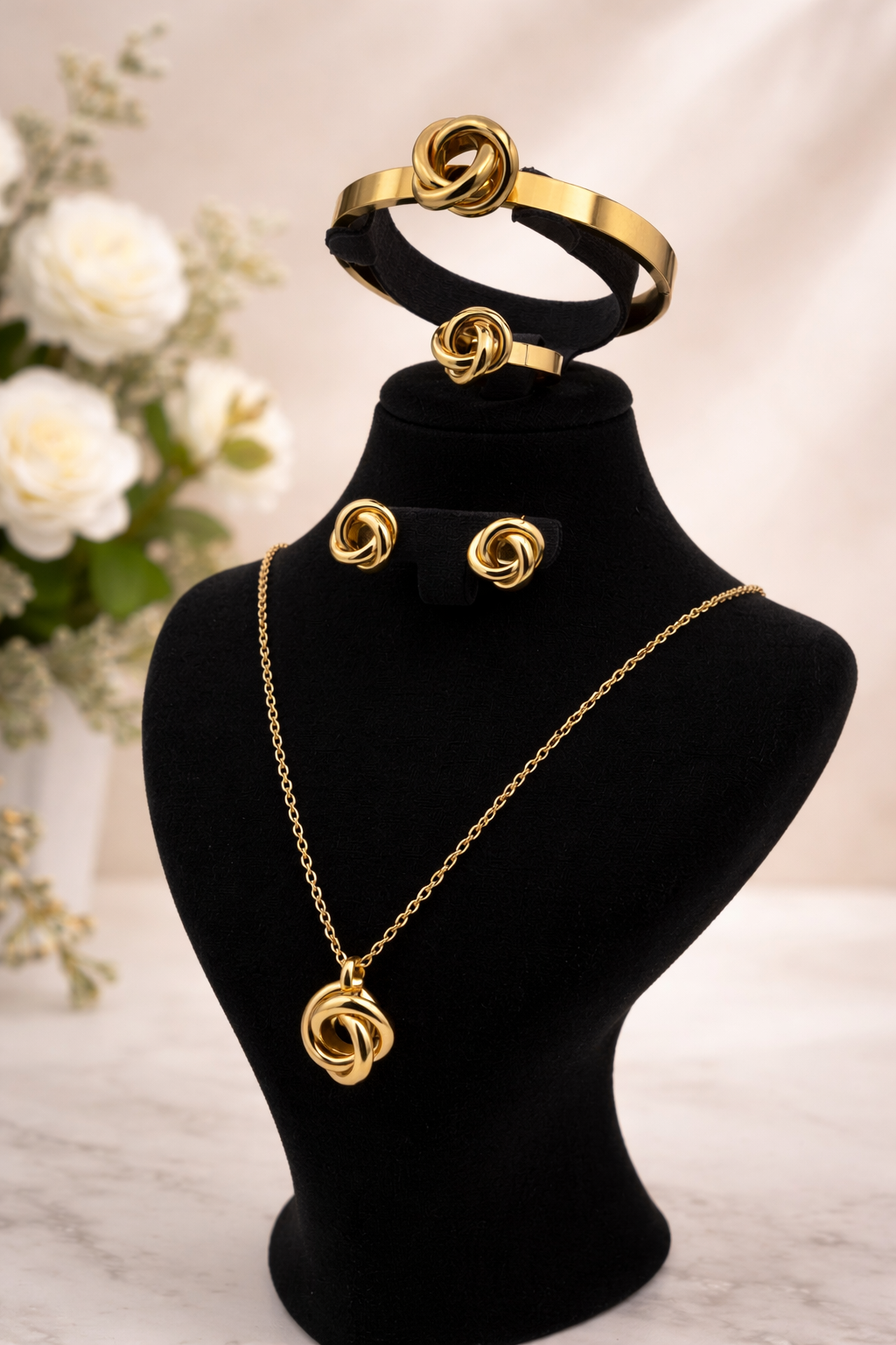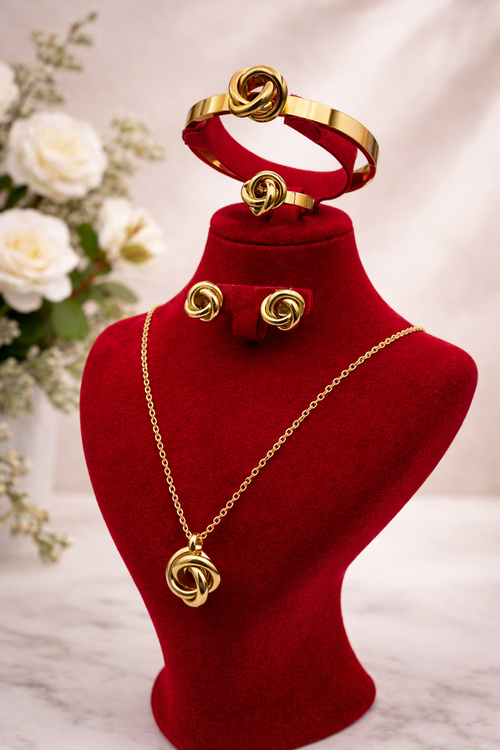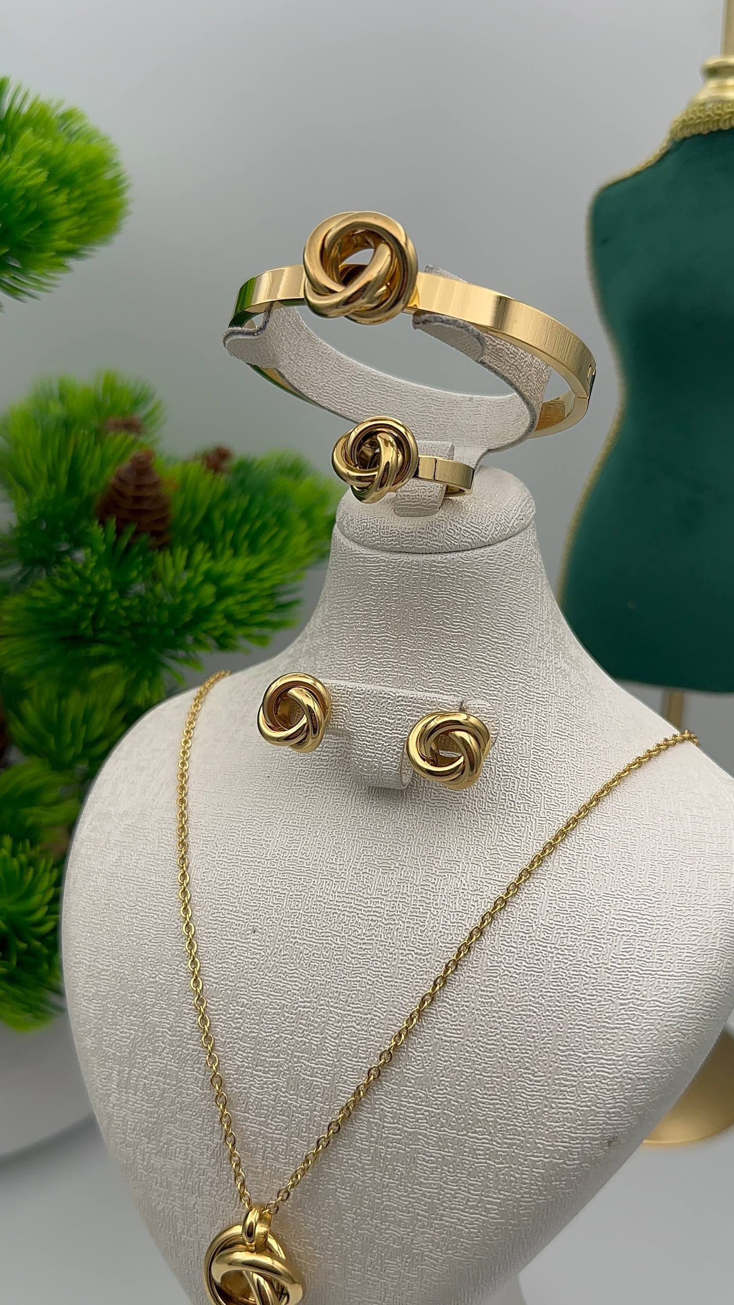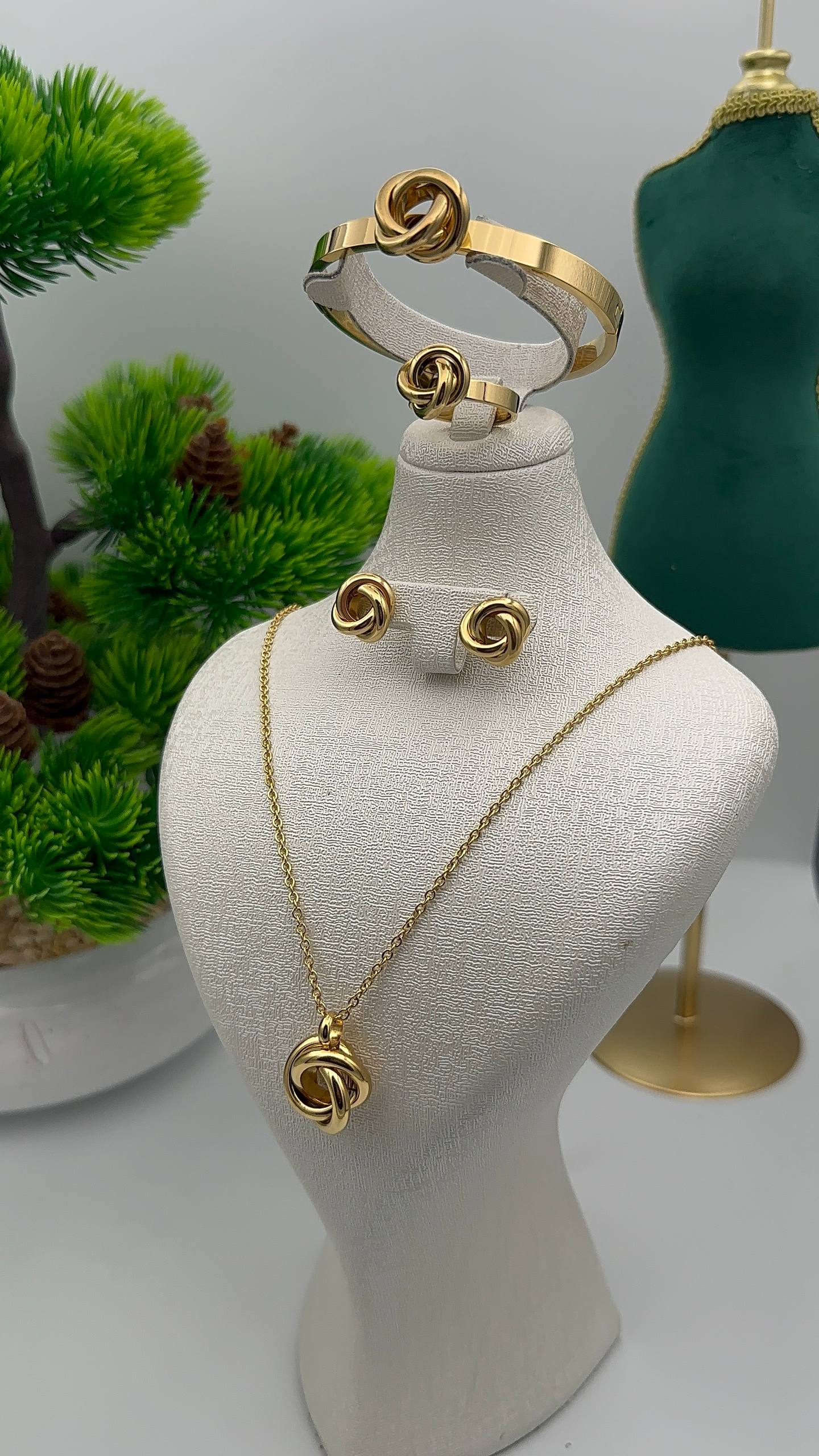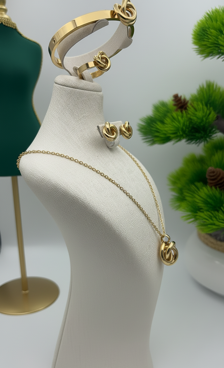 طقم عقدة الحب الجزائرية هو تحفة فنية مصنوعة من الستانلس ستيل الذهبي Acier Inoxydable 316L، يتميّز بجودته العالية ومقاومته للماء، بحيث يحافظ على لمعانه ولونه الجميل حتى مع الاستعمال اليومي. كل قطعة من هذا الطقم تم تصميمها بعناية لتمنحك إحساسًا بالفخامة والأناقة في كل مناسبة.